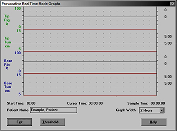 of your office or the sleep laboratory. At the same time the RigiScan® Plus Monitor is storing the patient’s data, you can view it on your computer screen. Real-time Monitoring can be performed in the Provocative or Nocturnal mode. If you select the provocative method of testing during initialization, and then click RTM, the Provocative Real-time Mode Graphs screen will open.